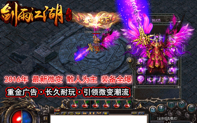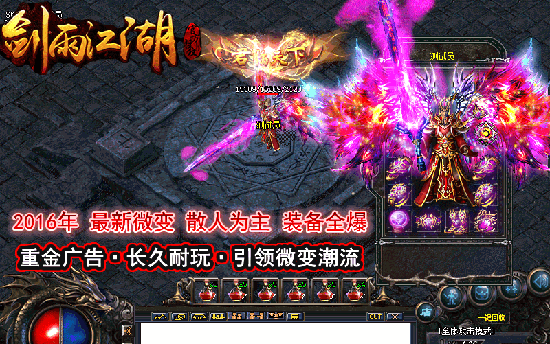 <255,70>【※公告※】剑雨江湖微变第一季版,元宝好刷装备好打,一天一套龙吟混沌,让你PK不用为装备发愁