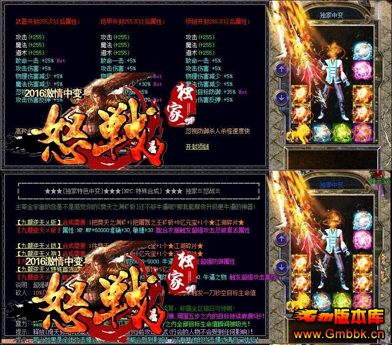 【版本特色】:免费合终极-免费转身送倍攻-送海量属性点-送超炫全屏技能。