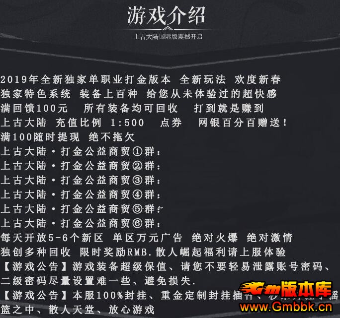 2019年11月上古大陆公益打金传奇一条龙单职业神器版【Leg引擎】 |